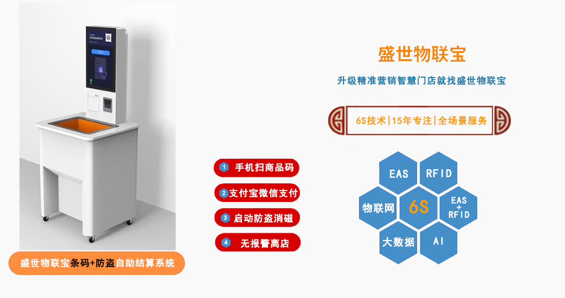 盛世物聯寶A39A消磁自助收銀機是掃描商品自帶條形碼識別后,結算完畢啟動防盜標簽消磁功能,能盡量避免商品的丟失,支持支付寶,微信等支付形式,內置人臉識別結算模塊和協議標準,便于升級人臉識別結算,系統具有MQTT、CAN物聯網協議標準,未來客戶在不更換現有硬件基礎上無接縫對接智慧門店物聯管理平臺,實現智能化物聯平臺的智能硬件管控(在線狀態、故障診斷、遠程維護、升級等)和大數據分析。產品廣泛應用于服裝、便利店、超市、精品鞋帽、書店等智慧門店。