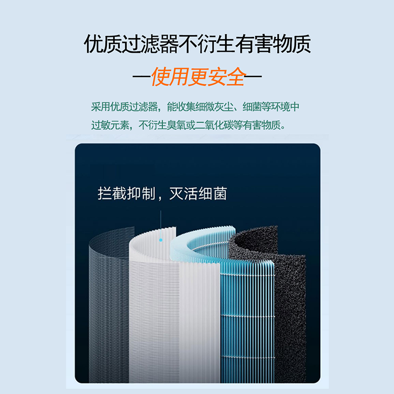 (4) 采用過濾器,能收集細微灰塵、細菌等環境中過敏元素,不衍生臭氧或二氧化碳等有害物質。