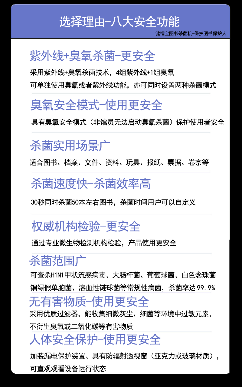 (7)具有臭氧殺菌安全模式(非館員操作,無法正常啟動臭氧殺菌模式),以保護使用者安全